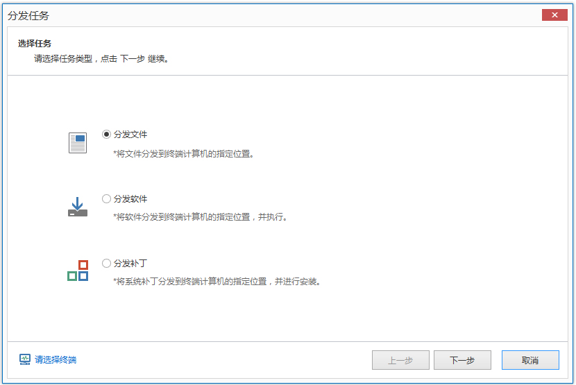 选择“分发文件”选项, 点击“下一步”按钮,开始设置分发文件参数。