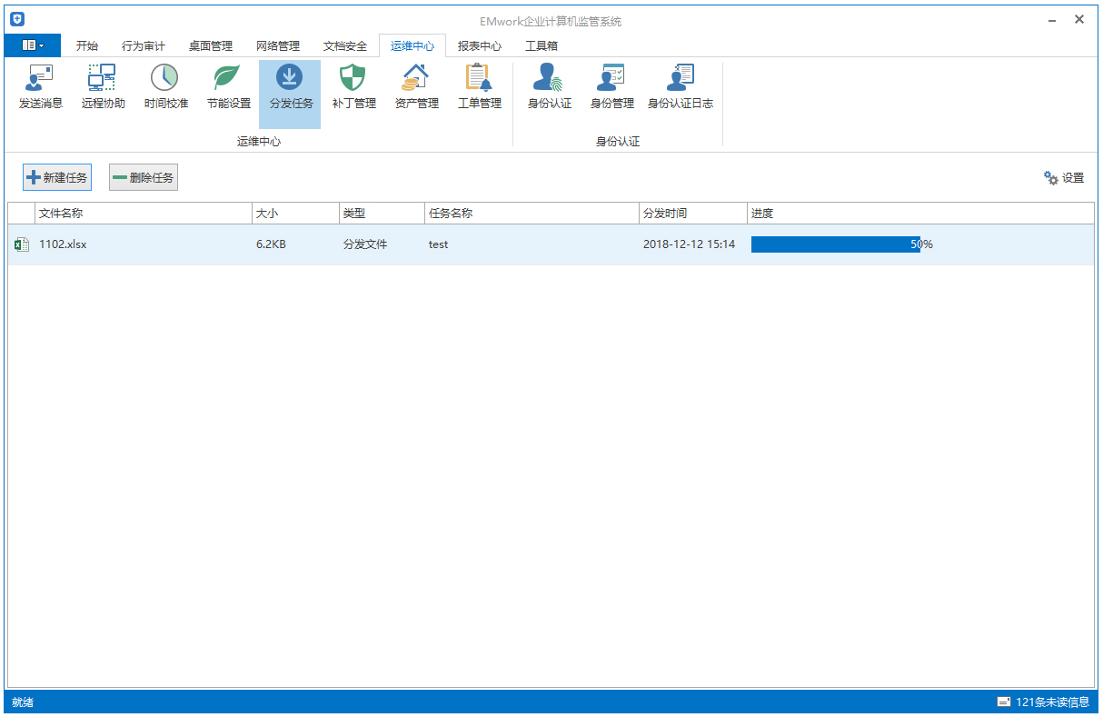 选择“运维中心”分组,点击“分发任务”按钮,新建一个分发任务。
