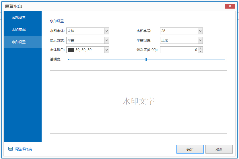 点击水印设置标签,可设置水印的显示效果,如水印字体、水印字号、显示方式等 。