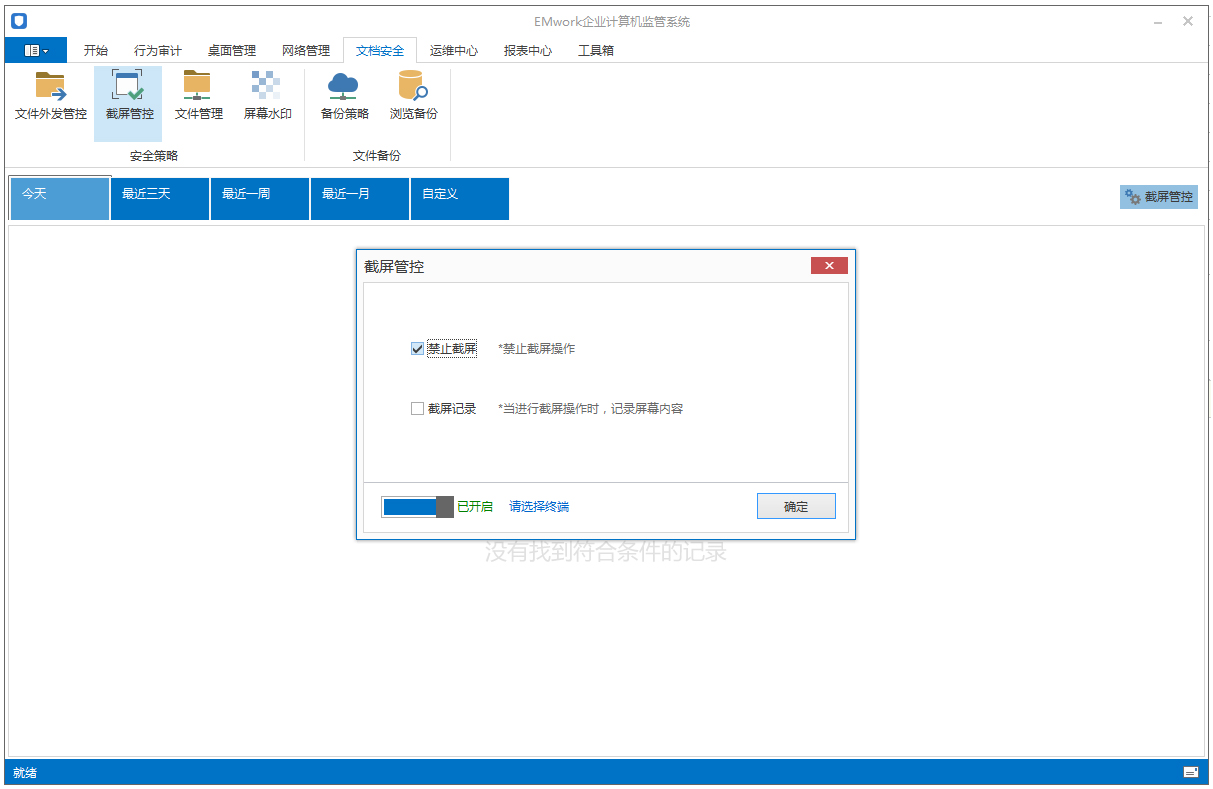 通过EMwork截屏管控可以禁止员工使用截屏,还可以记录截屏的记录,能够有效的防止企业数据通过截图泄露,也可以随时查看员工截图内容。